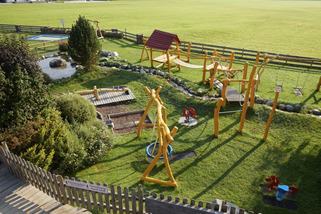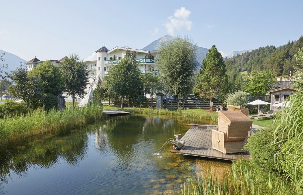 Mitten im Hotelaußenbereich funkelt ein kleiner Schatz: ein Naturbadeteich, der so schön ist, dass er liebevoll „kleiner Achensee“ genannt wird. Hier wird geplanscht, gespritzt, vom Steg gehüpft, über die Rutsche gerutscht und in die Sonne geblinzelt. Umrahmt von Wiesen und fröhlichem Treiben ist diese Badeoase ein Lieblingsplatz. Und vielleicht der coolste Spielplatz im Spätsommer und an warmen Herbsttagen. Und wer das Schwimmen erst noch lernen will, ist ebenfalls bestens aufgehoben: Für Kinder gibt es Schwimmkurse im Innenpool (gegen Gebühr) – mit Spaß, Vertrauen und viel Erfolg wird der erste Sprung ins Wasser zum sicheren Vergnügen.