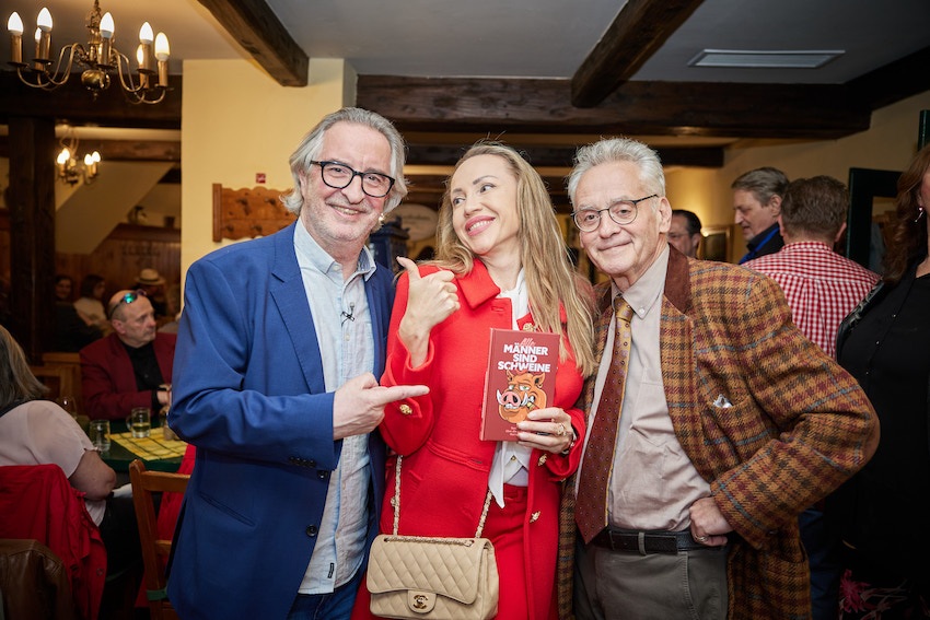 Darüber diskutierten auf offener Bühne auch erfolgreiche Frauen wie die Herausgeberin Uschi Pöttler-Fellner und die Astrolady Helga Kuhn sowie Kultwinzerin Katharina Baumgartner, die verschmitzt lächelte: „Darf man jetzt nicht mehr Mandeloperation sagen, sondern nur noch Weibeloperation?“ Die Unternehmerin Christina Lugner grinste: „Ich war jetzt schon zwei Mal verheiratet und kann bestätigen: Alle Männer sind wirklich Schweine.“ Und die Kabarettistin Ulrike Kriegler ergänzte mit Augenzwinkern: „Das Motto des Abends heißt ja ,Alle Männer sind Schweine‘. Daher habe ich meinen Lebensgefährten Peter Stöger daheimgelassen. Er liegt mit Männerschnupfen im Bett.“