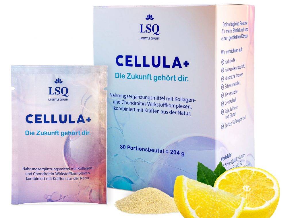 CELLULA+ ist „nicht nur“ ein Kollagenpulver. Mit einer hohen Kollagenkonzentration von 5.000 mg, hoher Bioverfügbarkeit und entzündungshemmenden Eigenschaften geht CELLULA+ über die reine Nährstoffversorgung hinaus. Der Wirkstoffkomplex aus acht synergistischen Inhaltsstoffen – darunter Kollagen Typ 1, Vitamin C, Hyaluronsäure, Chondroitin, Weihrauch und Kurkuma – bietet eine umfassende Lösung für ganzheitliche Zellgesundheit, strahlende Haut und allgemeines Wohlbefinden.