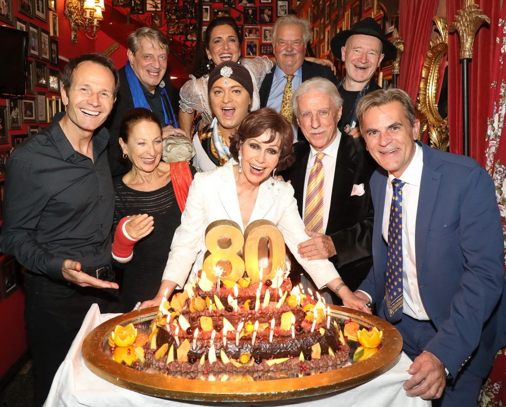 Und dass ihr noch lange nicht die Luft ausgeht, bewies die Gefeierte, als sie die von Hausherrn Peter GROSSMANN mit 80 Kerzen gekrönte Geburtstagstorte mit fast einem Puster auslöschte! Mit Standing Ovations und einem zig-stimmigen Happy Birthday wurde bis in die späte Nacht gefeiert, als gäbe es kein Morgen ….