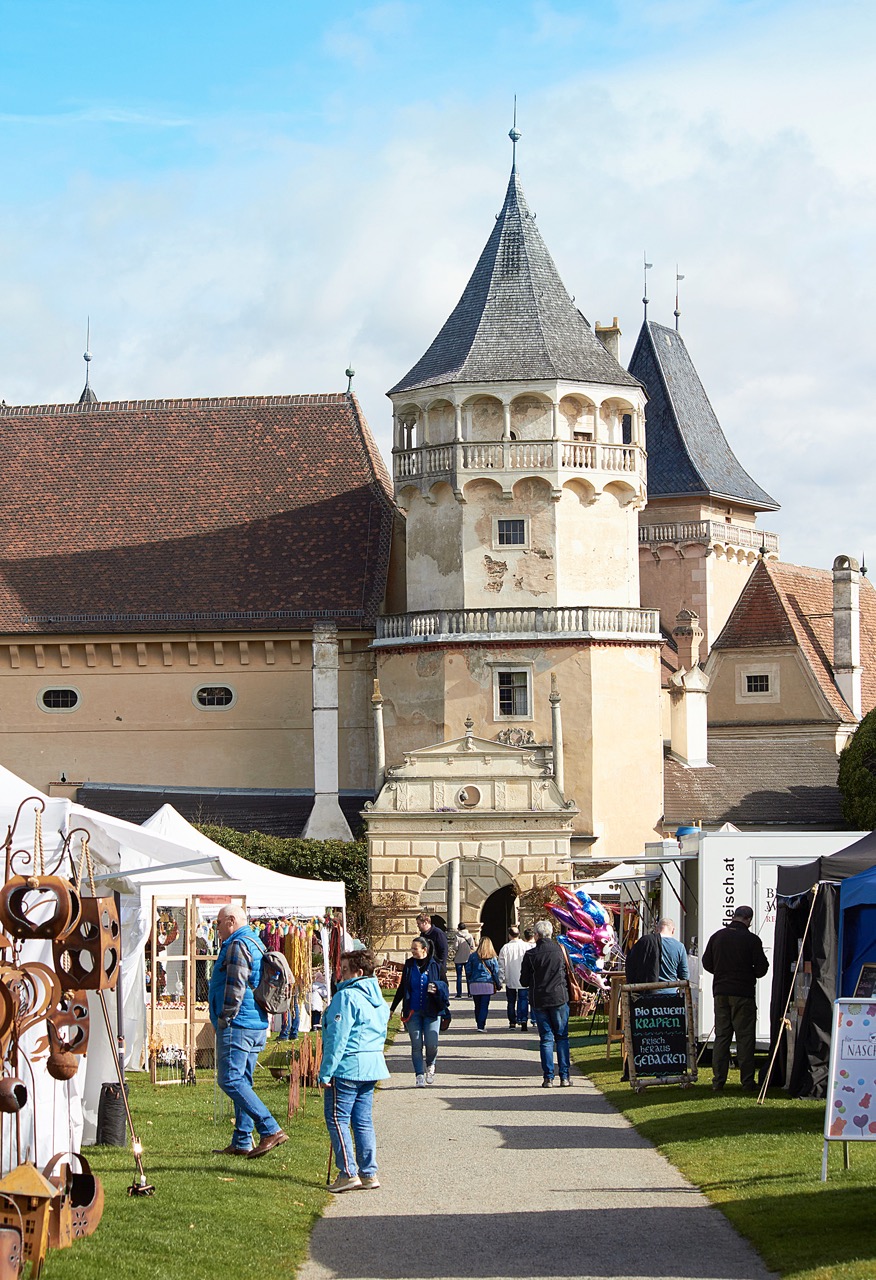 In den Prunkräumen, Museumsräumen und im Park locken verzierte Ostereier, bestickte Tischwäsche, Körbe, Keramik, Honig- und Käsespezialitäten, Osterschinken, Striezel und Bäckerei-Köstlichkeiten. Viele Aussteller verleihen ihren Produkten vor Ort den letzten Schliff: Eier werden bemalt, Kerzen vollendet, Textilien bestickt. Für die stilechte Osterjause sorgen Stände mit Baumkuchen, Ofenkartoffeln, Bauernkrapfen und gebrannten Mandeln – oder ein Besuch im Schlossgasthof Rosenburg.