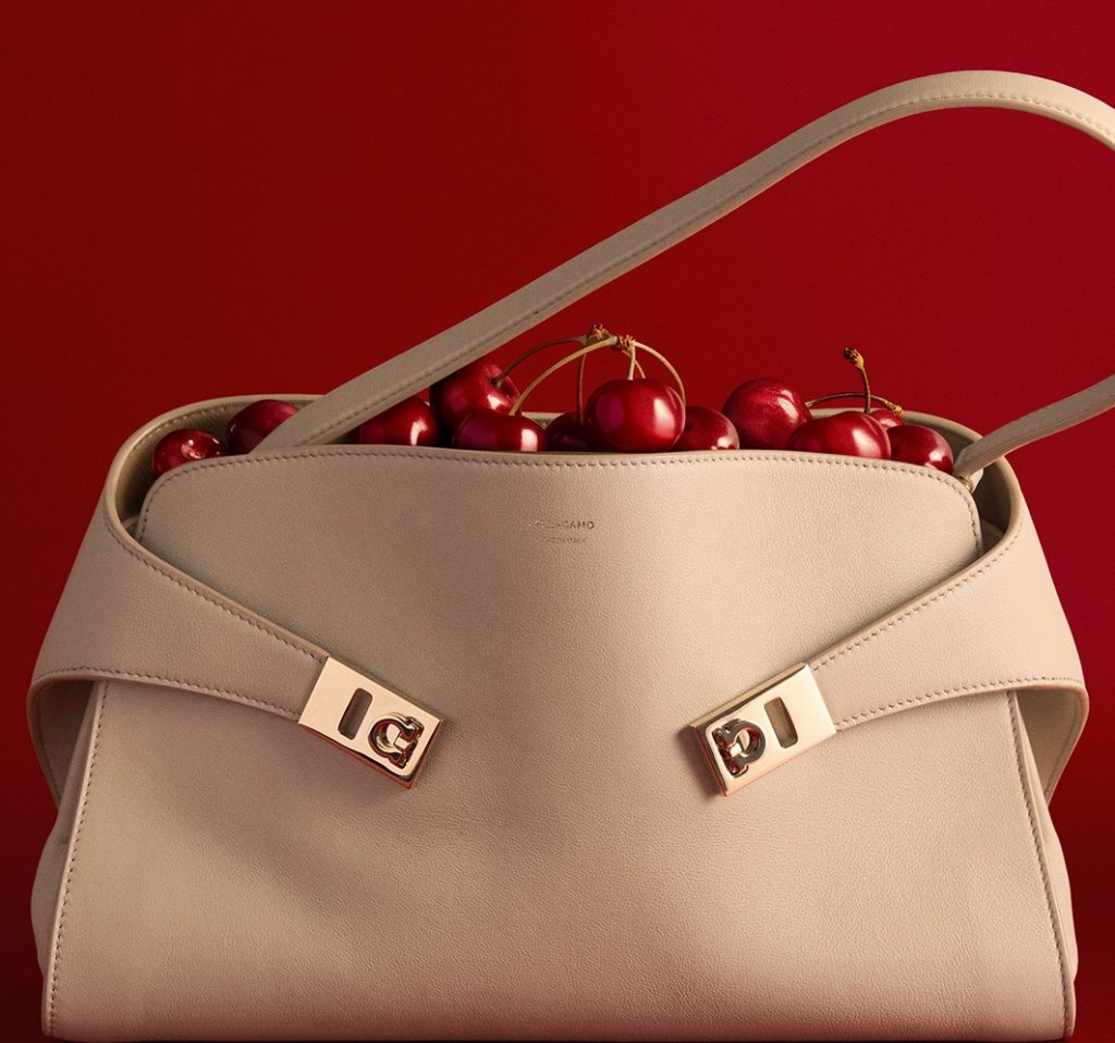 Ferragamo zelebriert den Tag der Liebe mit einer ganz besonderen Hommage an die ikonische Hug Bag unter dem Motto.In einer Serie ausdrucksstarker Bilder tritt die Hug Bag vor intensiven Rot- und Schwarztönen in Erscheinung, umgeben von roten Früchten und Blumen, die das Zusammenspiel zweier Elemente verkörpern.