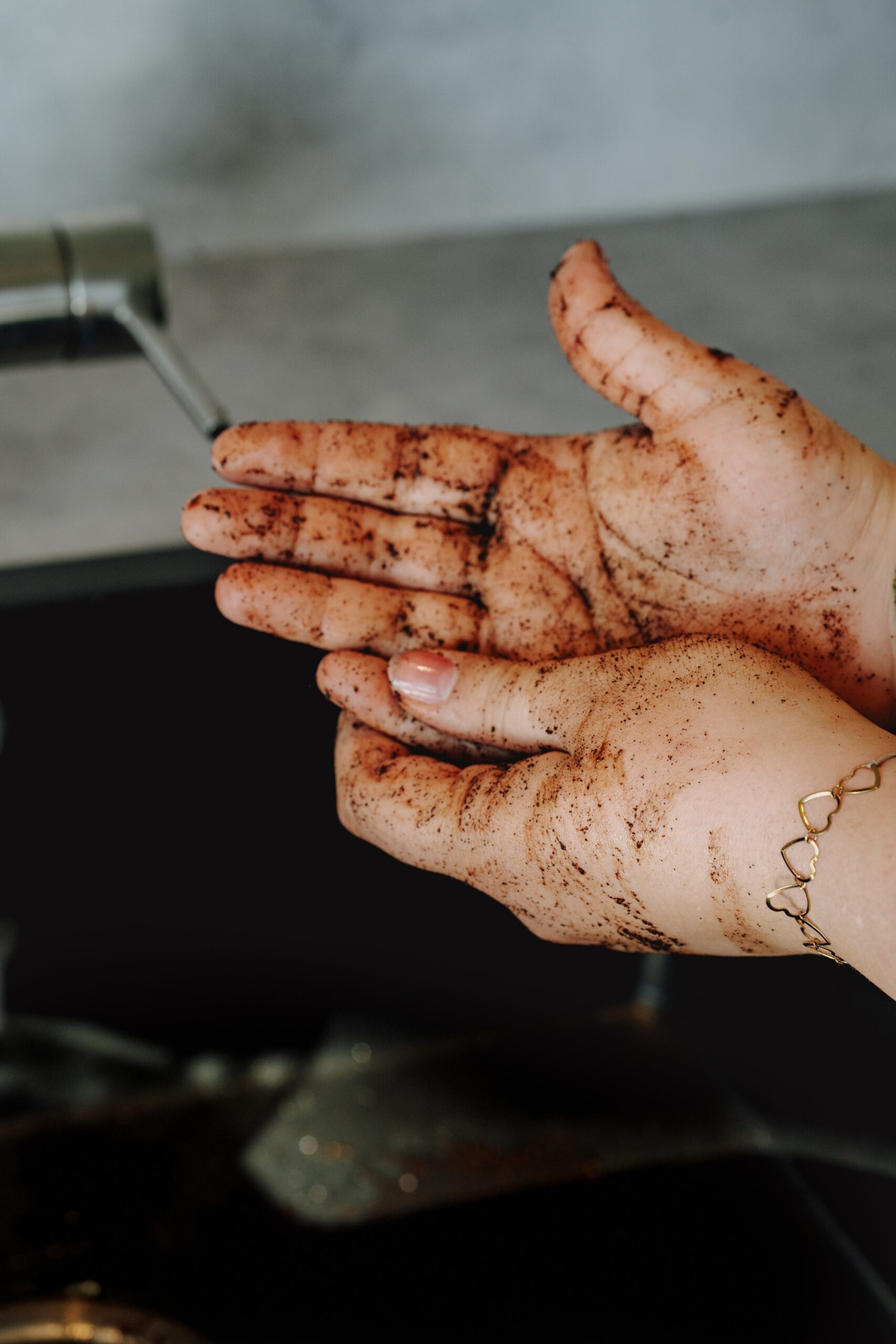 - Enge Gefäße: Vasen oder Flaschen mit Kaffeesatz und Wasser kräftig schütteln – ideal für Kalkränder oder Verfärbungen.