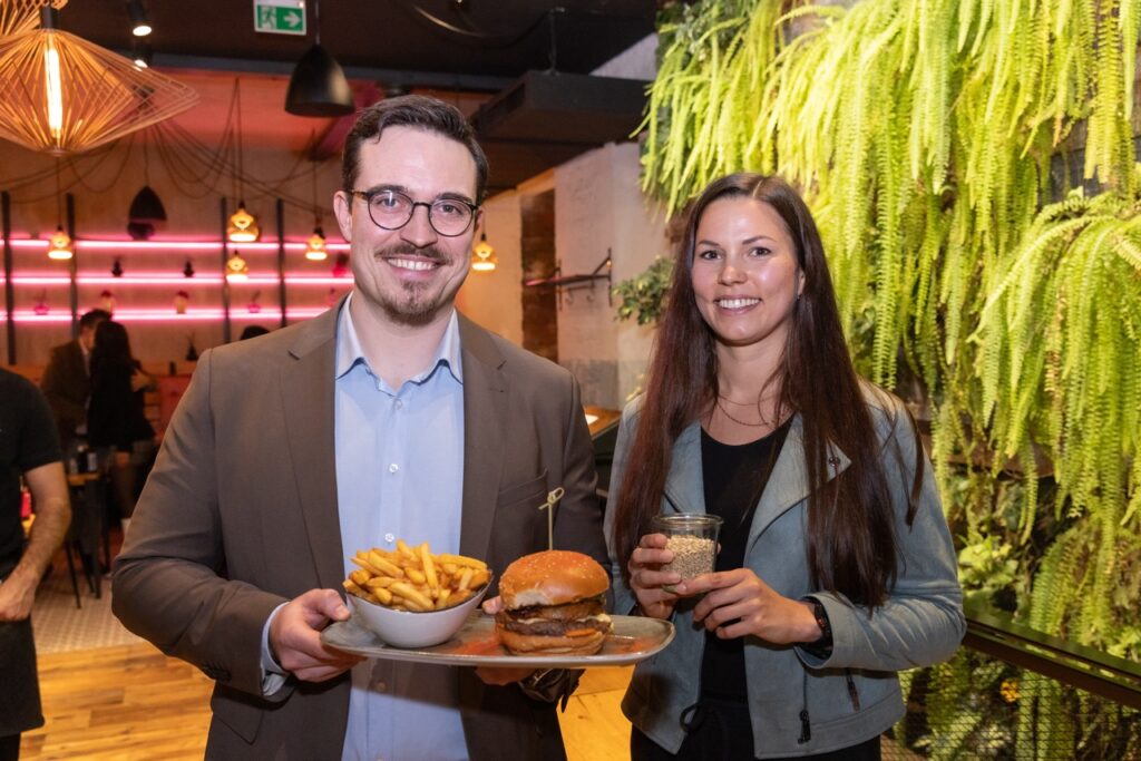 Und smart ist nicht nur das Patty: Ein Pesto Rosso aus upgecycelten Buns, knusprige Zwiebel‑Nester, hausgemachte Pickles und fermentative Miso-Mayo machen den Burger zur Umami-Bombe. Daniel Chuchlik, COO von Le Burger, bringt es auf den Punkt: „Die geretteten Buns im Pesto Rosso sind eine Weltneuheit – Food Waste wird zum Geschmackserlebnis.“