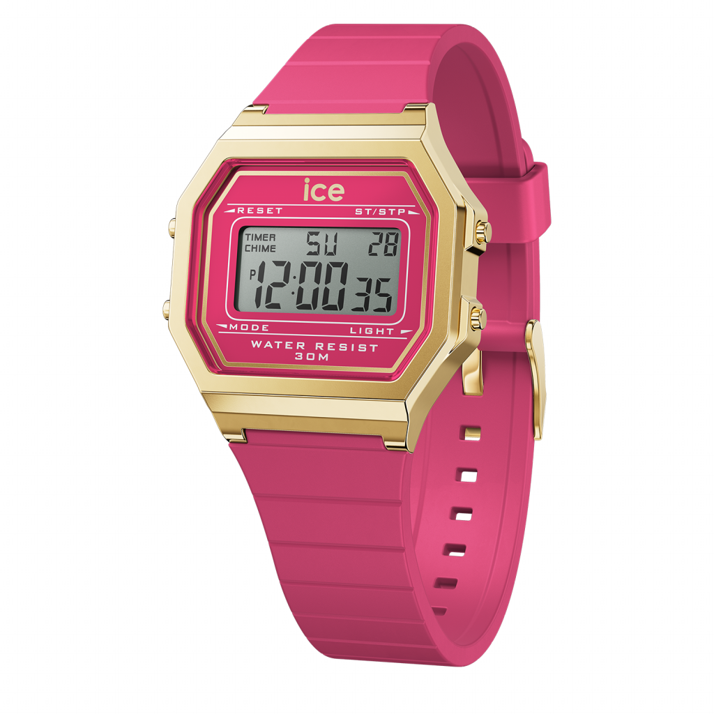 Das Design der Ice Digit Retro ist die perfekte Symbiose aus Retro und Moderne. Neben dem Vintage Charme besticht das Modell durch ein angenehm zu tragendes Silikonarmband, 3 ATM Wasserdichte sowie einem digitalem Display mit goldenem Ziffernblatt. Die Ice Digit Retro ist in einer Vielzahl von Farben erhältlich.
