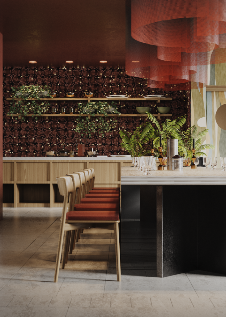 Die Bar „Hidden Room“ verbindet klassische Wiener Barkultur mit modernem Twist: tagsüber ein ruhiger Rückzugsort für Kaffee und Gespräche, abends lebendig mit Live-Konzerten und Lesungen. Das Design und die Getränkekarte spiegeln die kulturelle Vielfalt des zweiten Bezirks wider – von floralen Signature Cocktails wie „Desert Rose“ über kräftige Kompositionen wie „Red City“ bis zu Bar-Klassikern. Auch koschere Liquids gehören zur Auswahl.